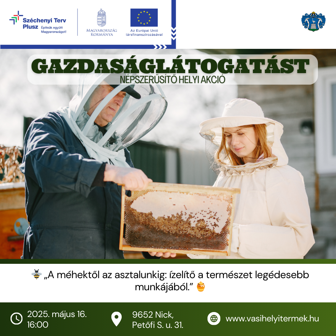 Vas Vármegye Önkormányzata azzal a céllal valósítja meg a TOP_PLUSZ-3.1.1-21-VS1-2022-00001 azonosítószámú Vas vármegyei foglalkoztatási-gazdaságfejlesztési Paktum című projektet, hogy támogassa a vármegyei szintű foglalkoztatásösztönző folyamatokat, a meglévő munkaerő helyben maradását. A pályázat keretében Helyi termék- vagy szolgáltatásfejlesztéshez kapcsolódó tevékenységek valósulnak meg. A projektrész célja a meglévő helyi termékek értékként való erősítésének támogatása. A látogatás során közösen ismerhetjük meg a méhek munkáját, a kaptárak felépítését, valamint a méz kinyerésének és feldolgozásának folyamatát.
